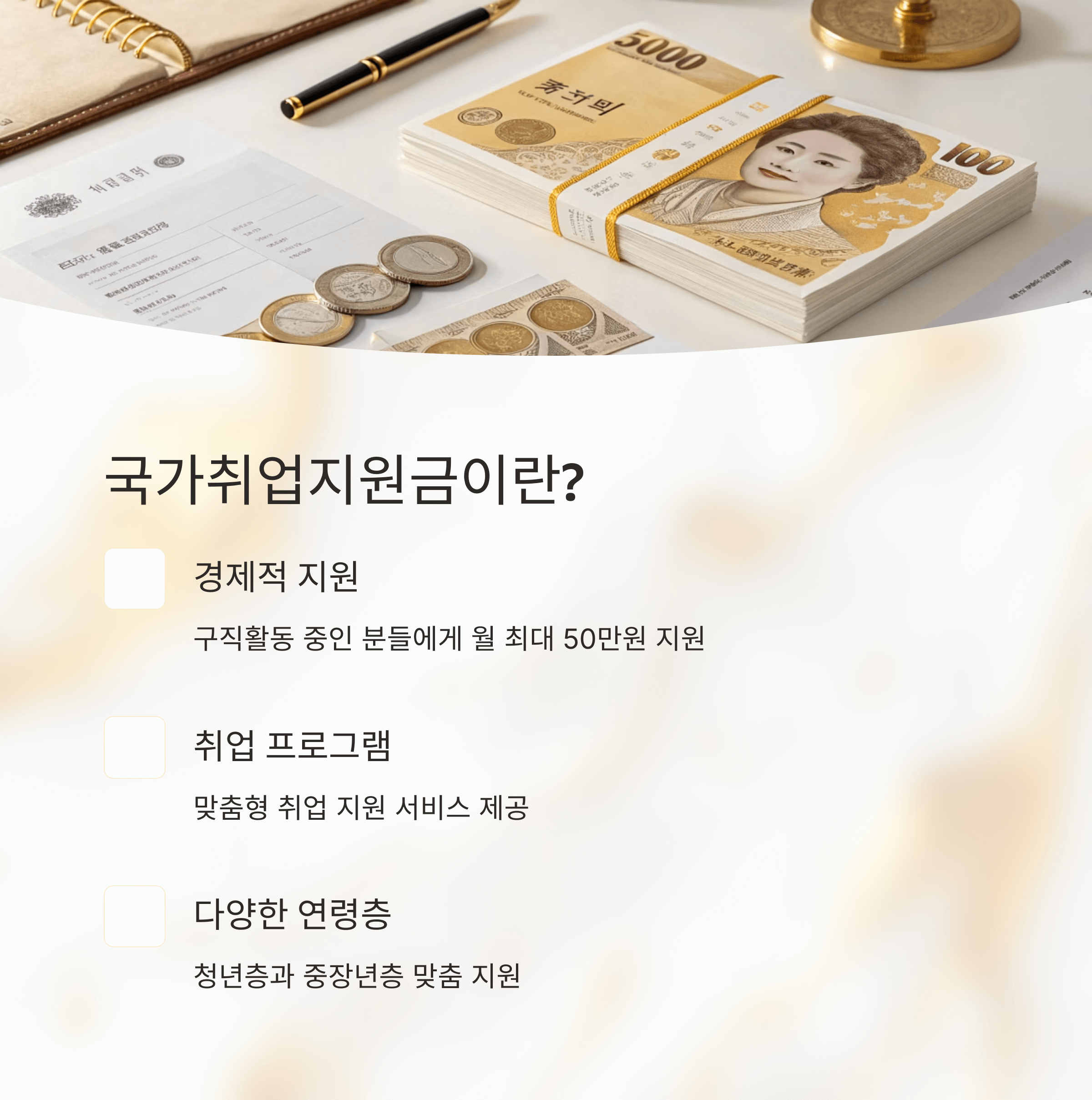 '국가취업지원금'이란 취업을 준비하는 구직자들에게 실질적인 도움을 제공하는 정부가 지원하는 대표적인 고용복지 제도입니다.